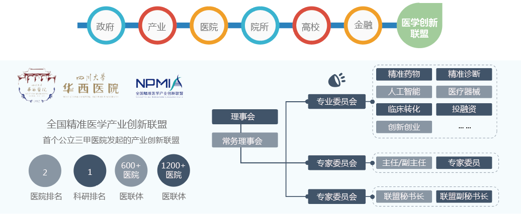 贝壳社协助华西医院成立由“政、产、学、研、医、金”等组成的医学创新联盟。同时吸引头部机构,如腾讯、微创、华大基因等加入联盟,提升联盟的影响力。